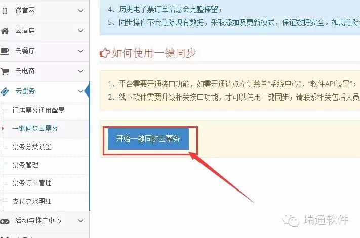 首先必须是一键同步嘛;点击一键同步后,软件中的分类和票务信息全都同步到系统中了;