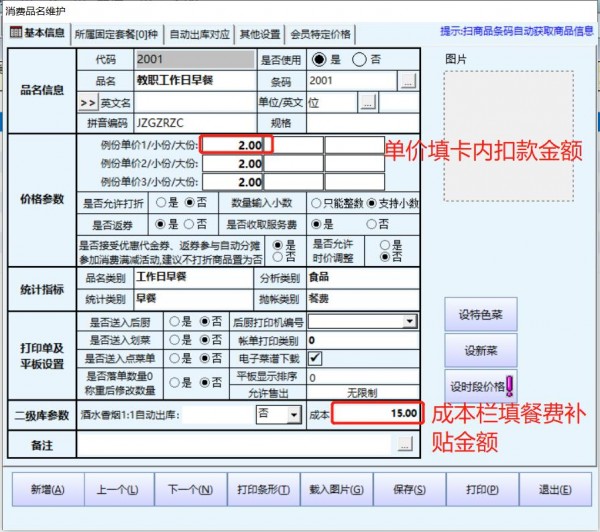 餐厅计费规则中新增餐时计费项目,并按照工作日/节假日、支付类型及各餐时对已有餐标进行计费参数设定。成本核算一目了然。