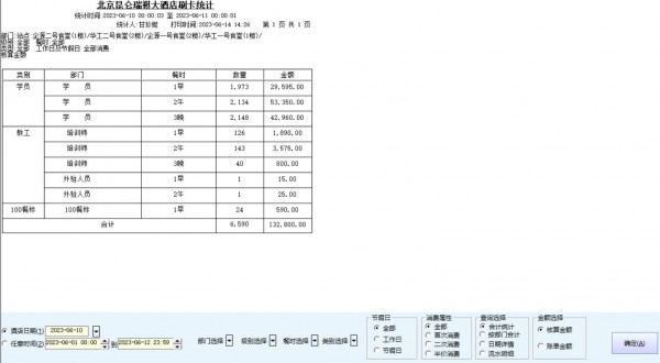 各种指标类型的统计报表,让员工餐管理更加科学有效。无论是部门用餐分析、就餐时段查询,还是按餐时、用餐级别、工作日与节假日的分类指标统计,都能详尽展示。