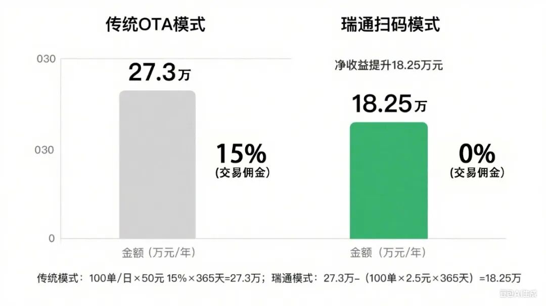 在洗浴服务行业数字化转型进程中,OTA 平台作为流量入口虽为商家带来客源增量,但15%的高额佣金已成为侵蚀利润的主要痛点。针对这一行业共性难题,瑞通推出「自助扫码购票」创新功能,通过技术赋能构建商家自主流量闭环,实现佣金成本归零与客户资产沉淀的双重价值提升。 核心功能价值:重构消费交易链路 零佣金交易体系,利润留存率100% 依托私有化部署的支付结算模块,客户通过扫描店内专属二维码直接完成下单支付,全程脱离第三方 OTA 平台链路,交易佣金率从15%降至0,每笔订单利润留存率实现最大化。该模式彻底打破平台对流量分配的垄断,将中间环节成本转化为商家实际收益。 采用极简交互设计,扫码→支付→电子凭证生成全流程耗时≤10 秒,支持微信、支付宝等多渠道支付,适配不同客群使用习惯。 搭载实时核销系统,客户结账、开牌环节自动完成凭证验证,同步更新消费数据至后台管理系统,减少人工核对成本,降低操作误差率。 内置会员权益体系,支持设置 “线下扫码专享95折”、“首次扫码立减” 等差异化优惠策略,通过价格杠杆引导用户从 OTA 平台转向商家私域渠道。同时,系统自动留存客户消费频次、偏好等数据,为精细化运营与复购转化提供数据支撑,客户黏性较传统模式提升30%以上。 以行业平均数据为基准,构建收益对比模型: 日均订单 100 笔 × 客单价 50 元 ×15% 佣金 = 日均佣金成本 750 元→年化佣金支出 27.3 万元。 佣金成本归零,即便让渡 5% 优惠给客户(单客成本 2.5 元),仍可实现年化净收益 18.25 万元(27.3 万 - 9.05 万),同时沉淀全部客户数据资产。 针对洗浴中心运营场景定制部署策略: 在入口迎宾区、休息区桌牌、手牌背面等高频接触点设置二维码立牌,确保用户触达率最大化。 配套标准化引导话术(如 “扫码购票立享5元立减,比平台更优惠”),通过简单培训即可提升转化效率。 为加速商家数字化转型,即日起开通系统可享三重权益: 免费获取定制化二维码立牌(含品牌设计服务); 附赠《私域流量转化手册》,包含 30 + 场景化运营话术; 前 20 名签约客户免收首年系统服务费(价值 2000 元 / 年)。 即刻部署瑞通自助扫码购票系统,告别 OTA 佣金依赖,构建自主可控的数字化营收体系。 #洗浴行业数字化 #降本增效方案 #私域流量运营 #瑞通智慧服务